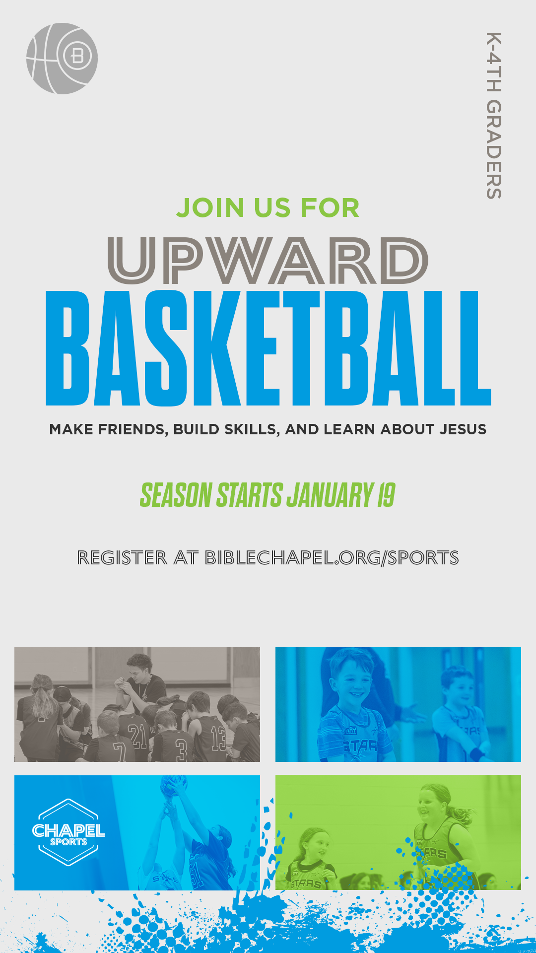 Calling all kids in Kindergarten - 4th Grade! Get ready for an awesome season of Upward Basketball at The Bible Chapel, where we’ll have fun, grow our faith, and make new friends!