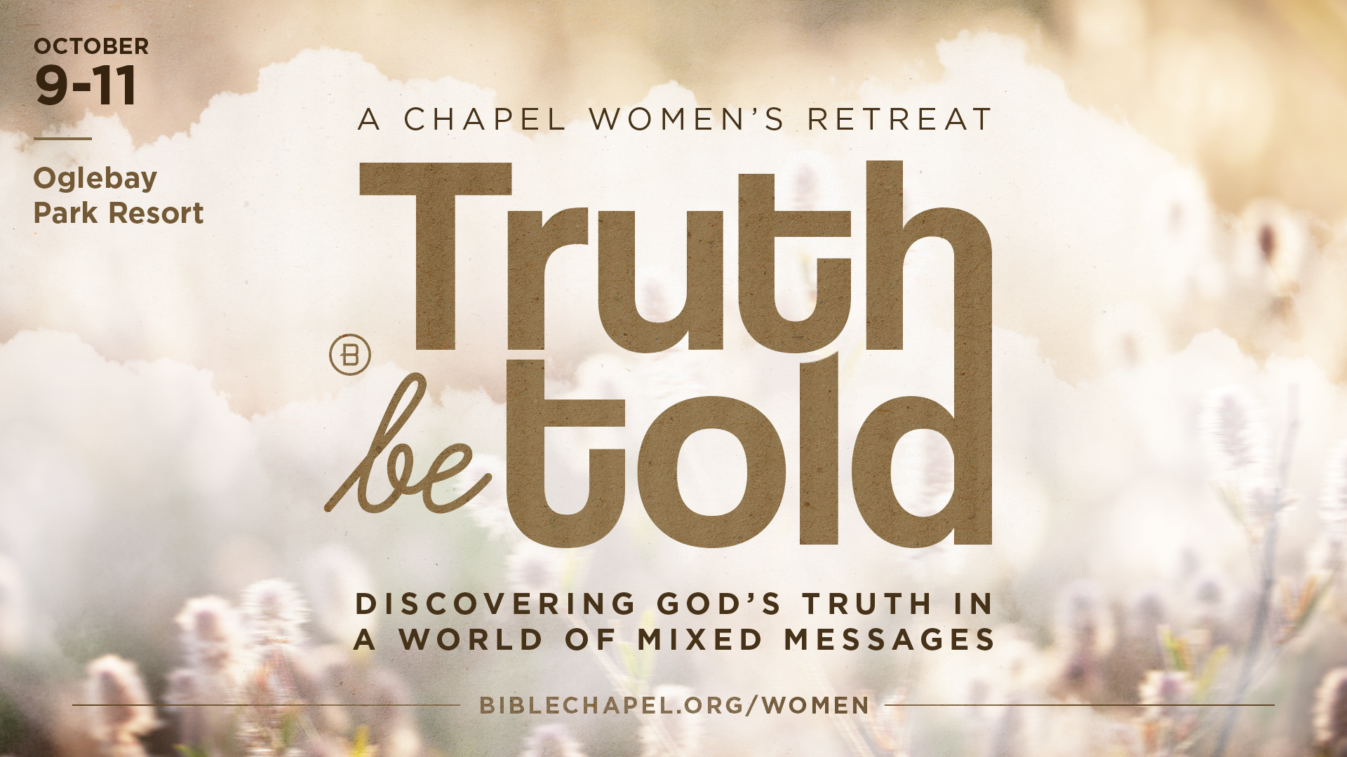 Step away from the busyness of everyday life and join us for our Chapel Women's Retreat, Truth Be Told: Discovering God’s Truth in a World of Mixed Messages, October 9–11, at Oglebay Park Resort in West Virginia.