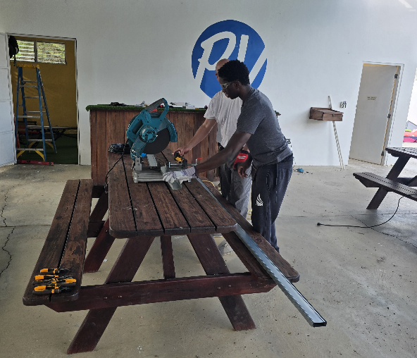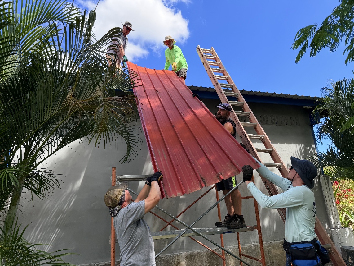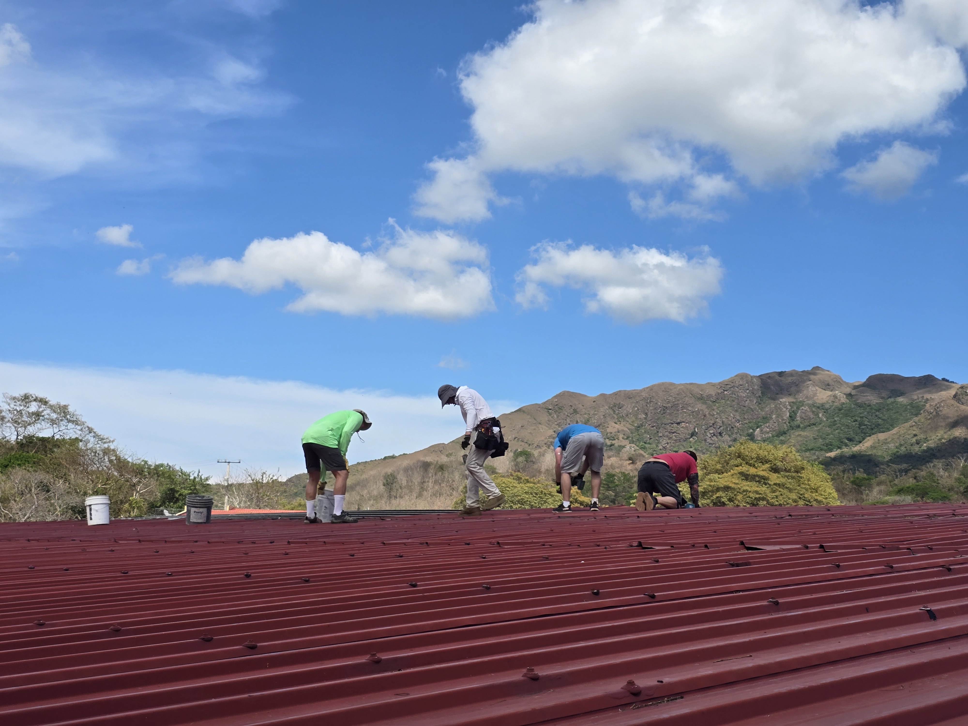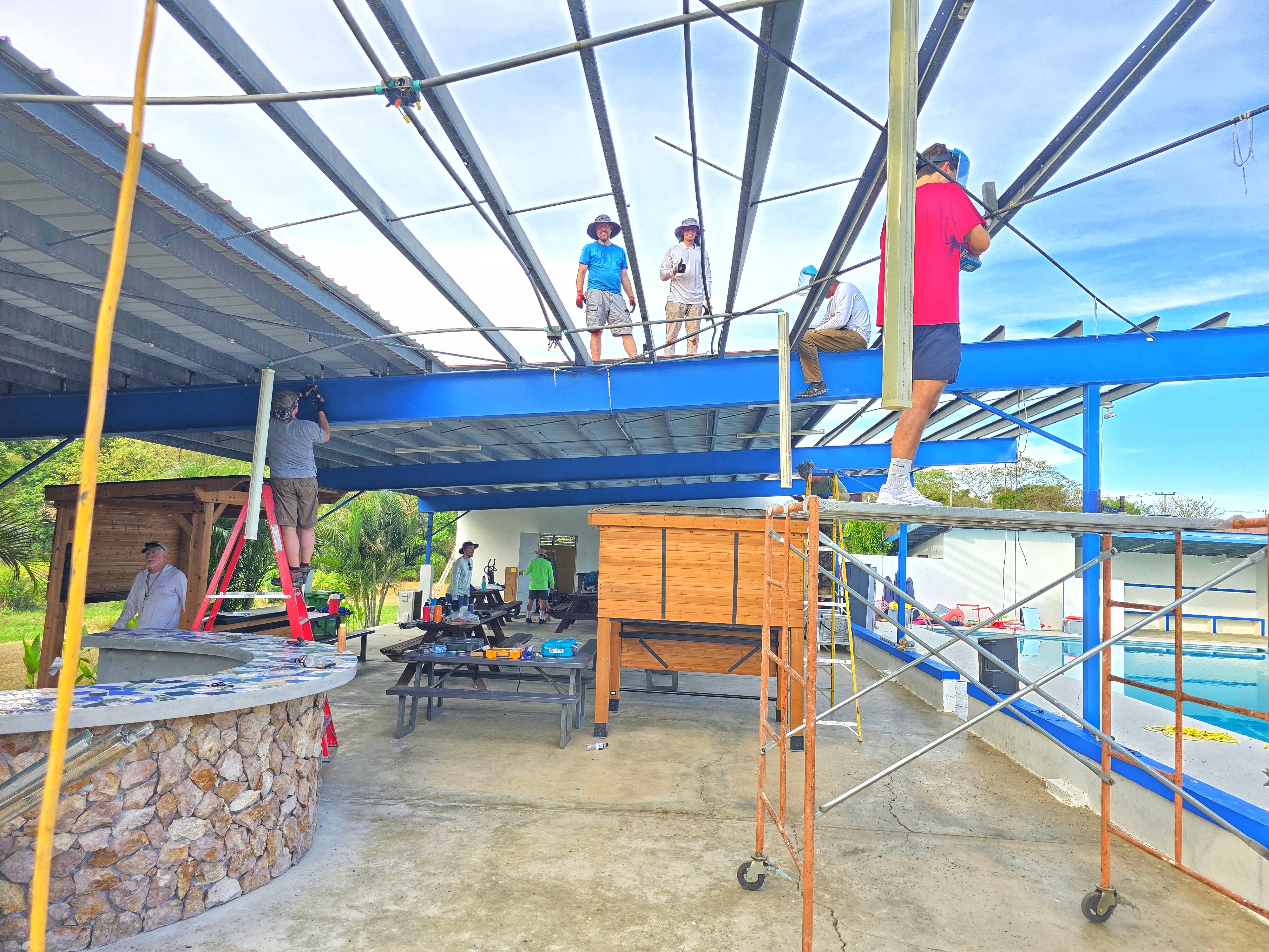 After a great lunch, we got to work. Our main task this week will be replacing the roof by the pool so that new solar panels can be placed on it. Today, we focused on starting to take down the roof. We made a lot of progress in just a few hours.