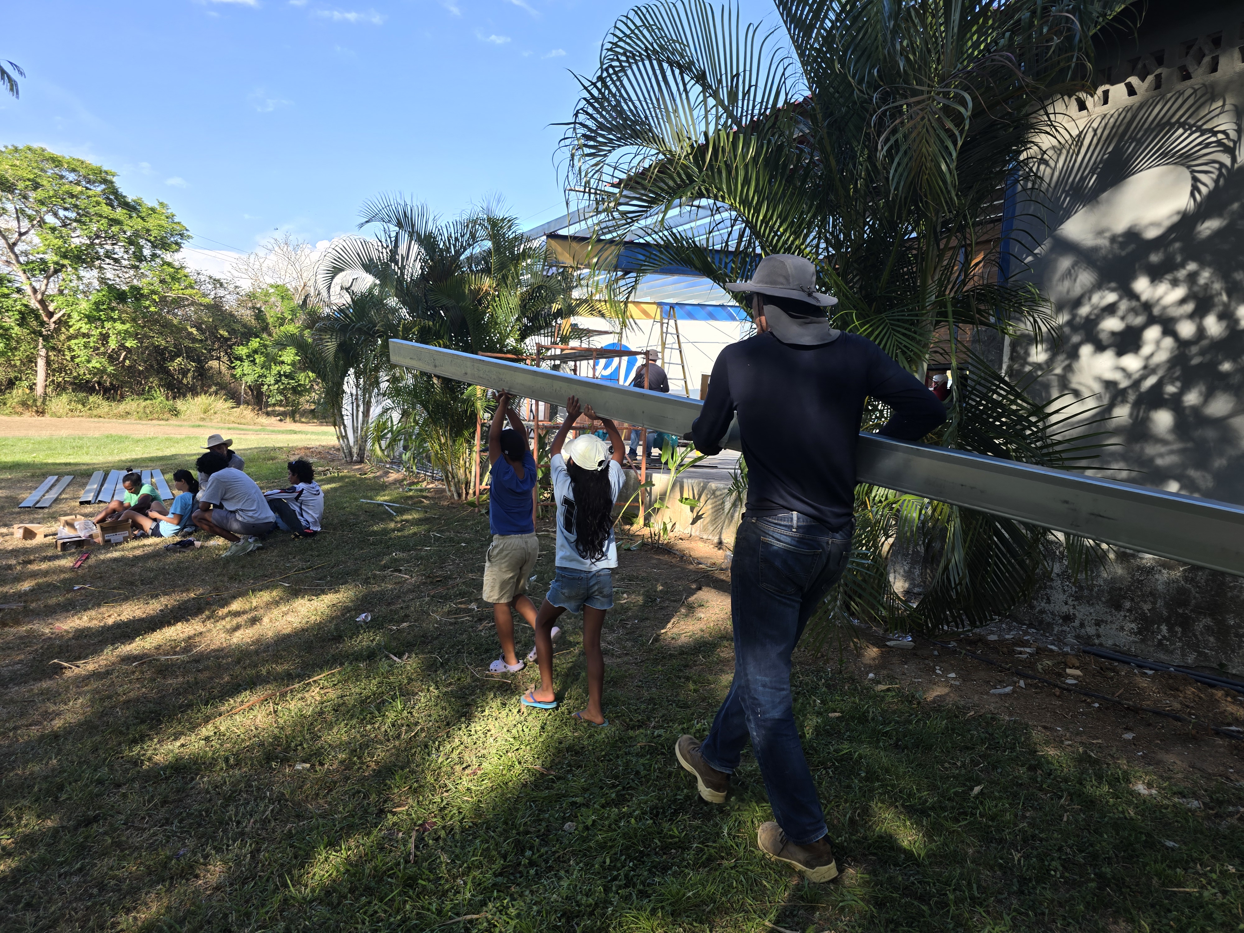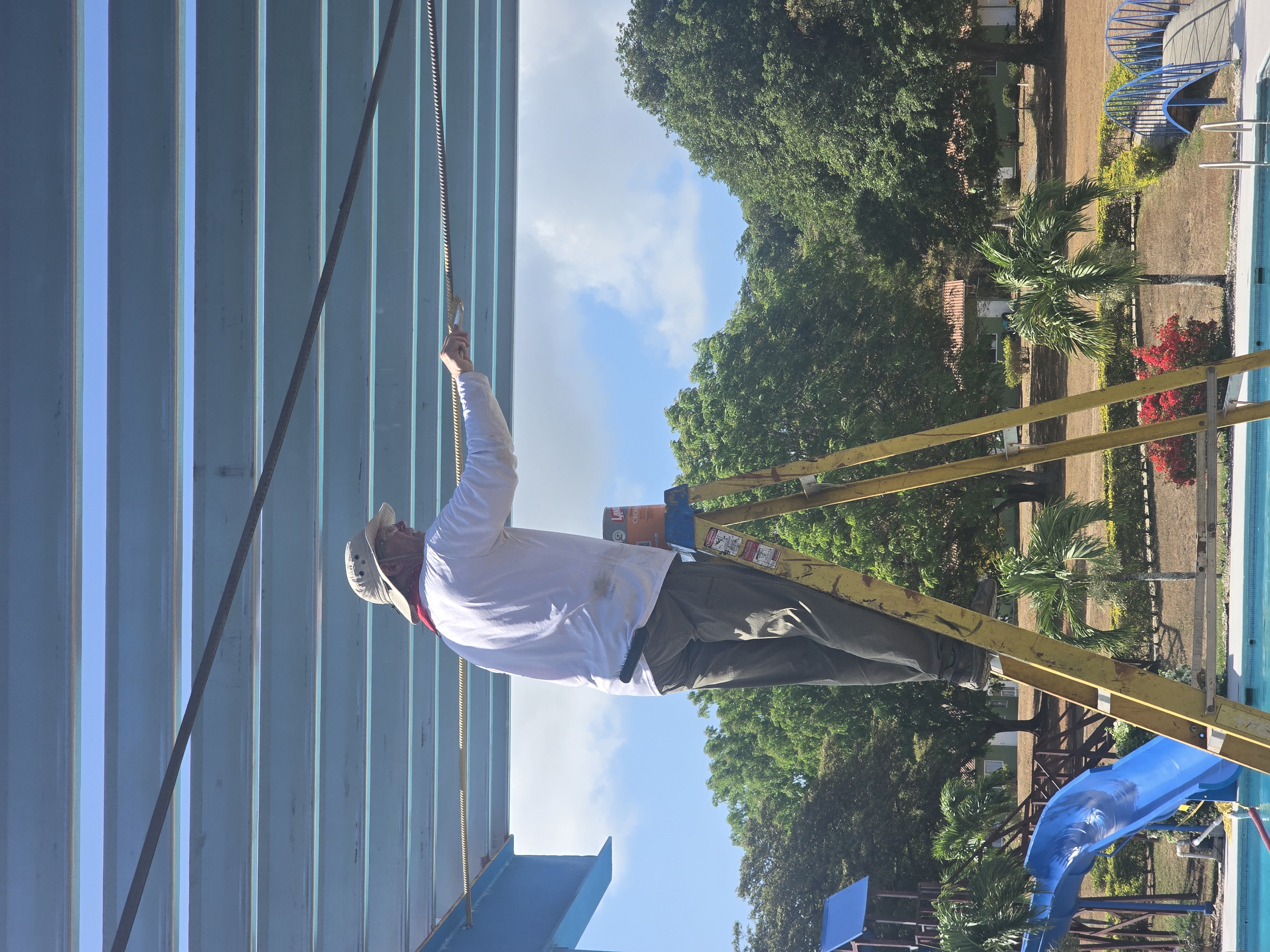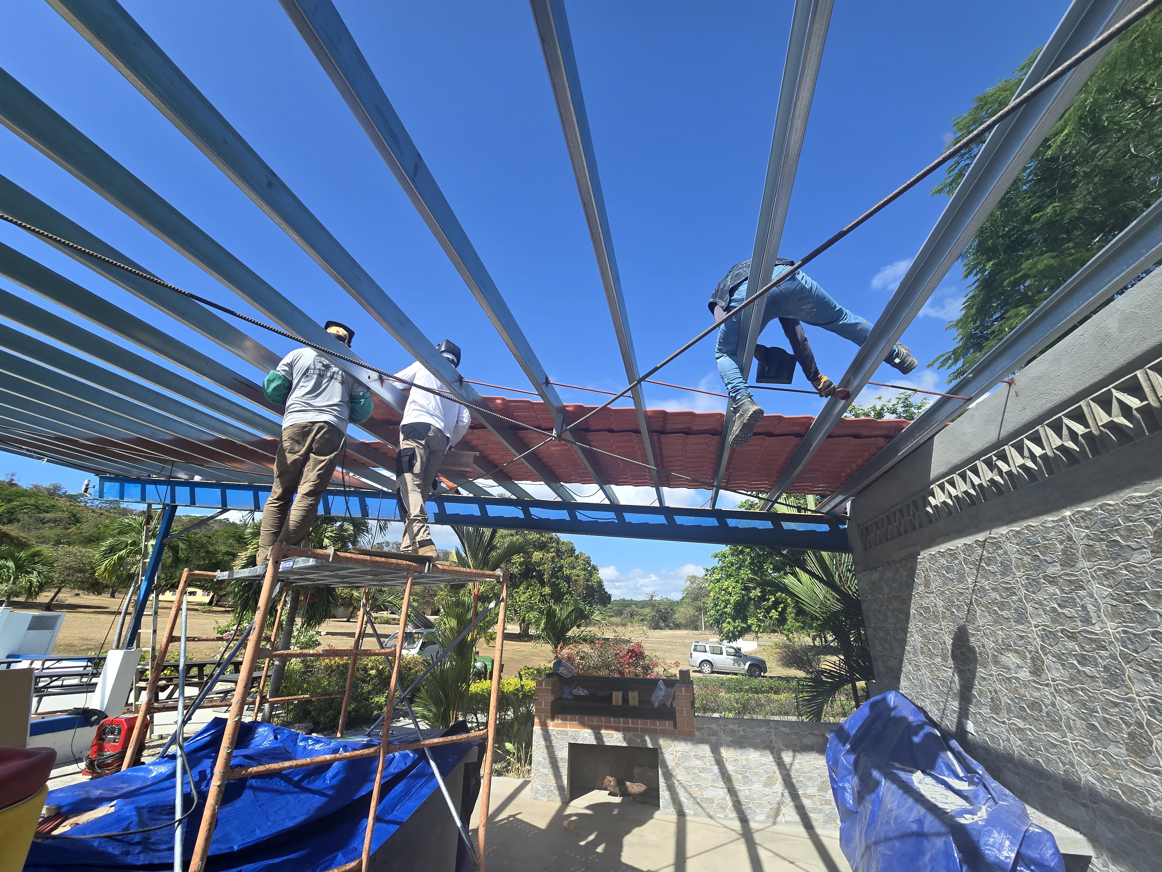After a great breakfast back to the biggest project of this trip. Installing an entire new roof over the pool before the family day arrives 2 days from now. Please pray we will be finished before that day comes. Over 1,100 people are expected and the gospel will be preached to everyone along with the kids.