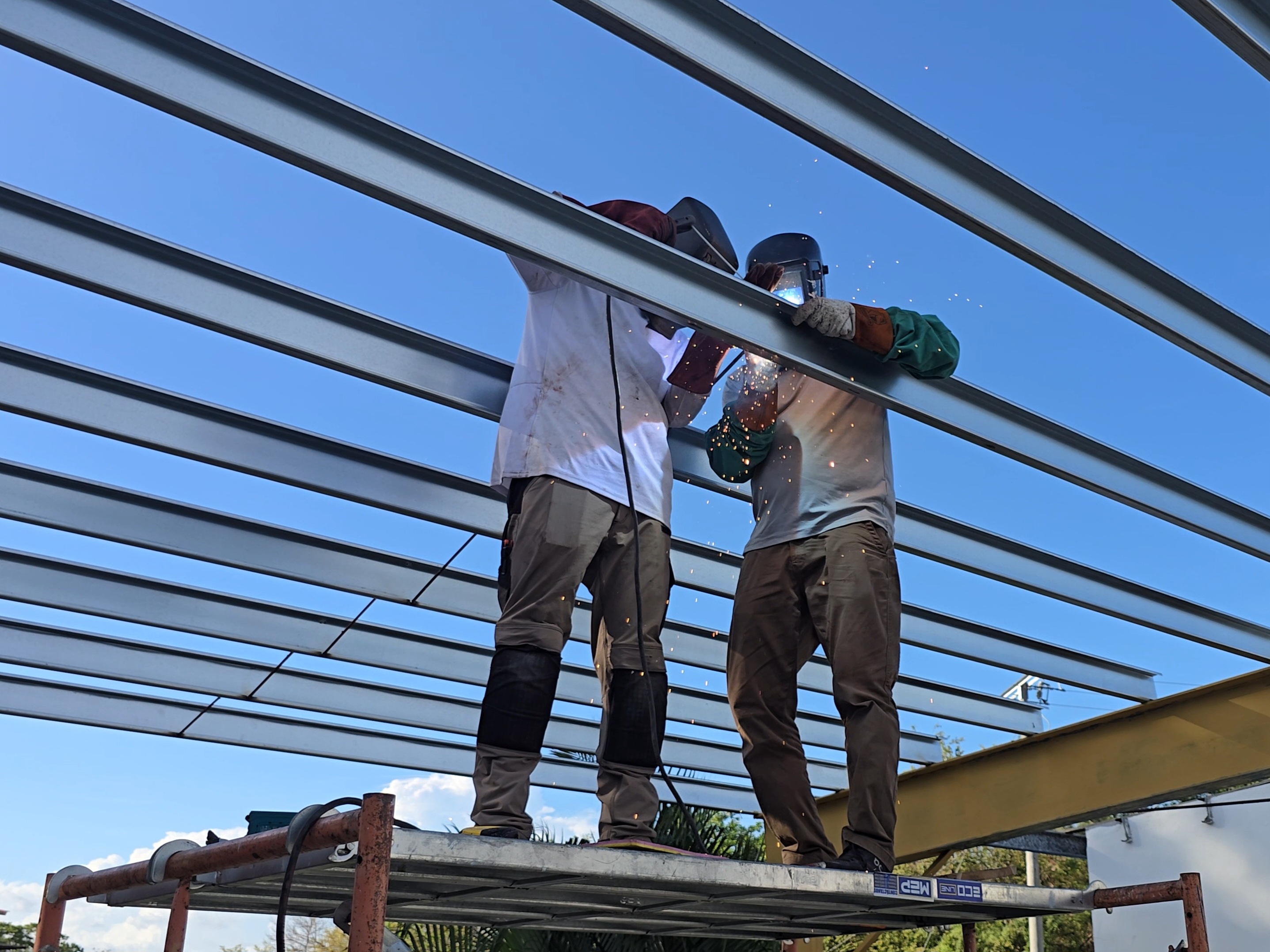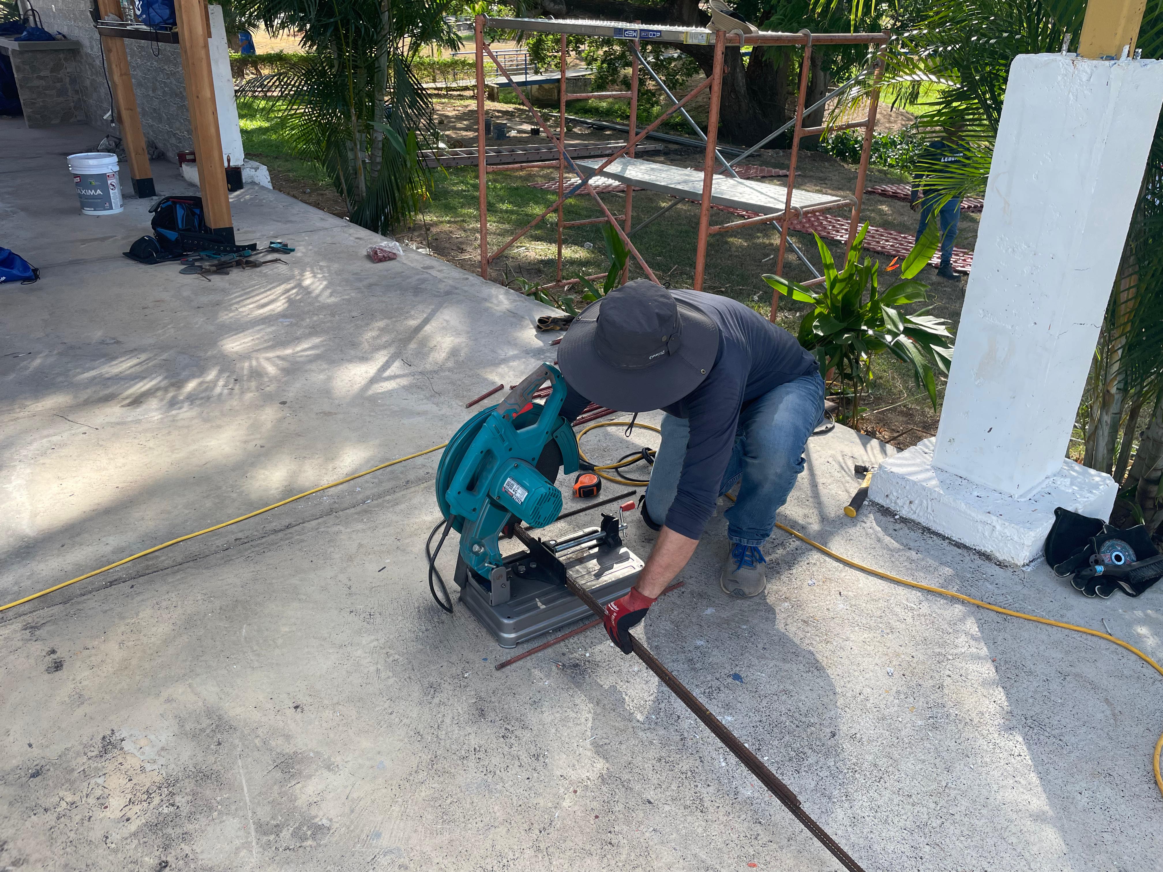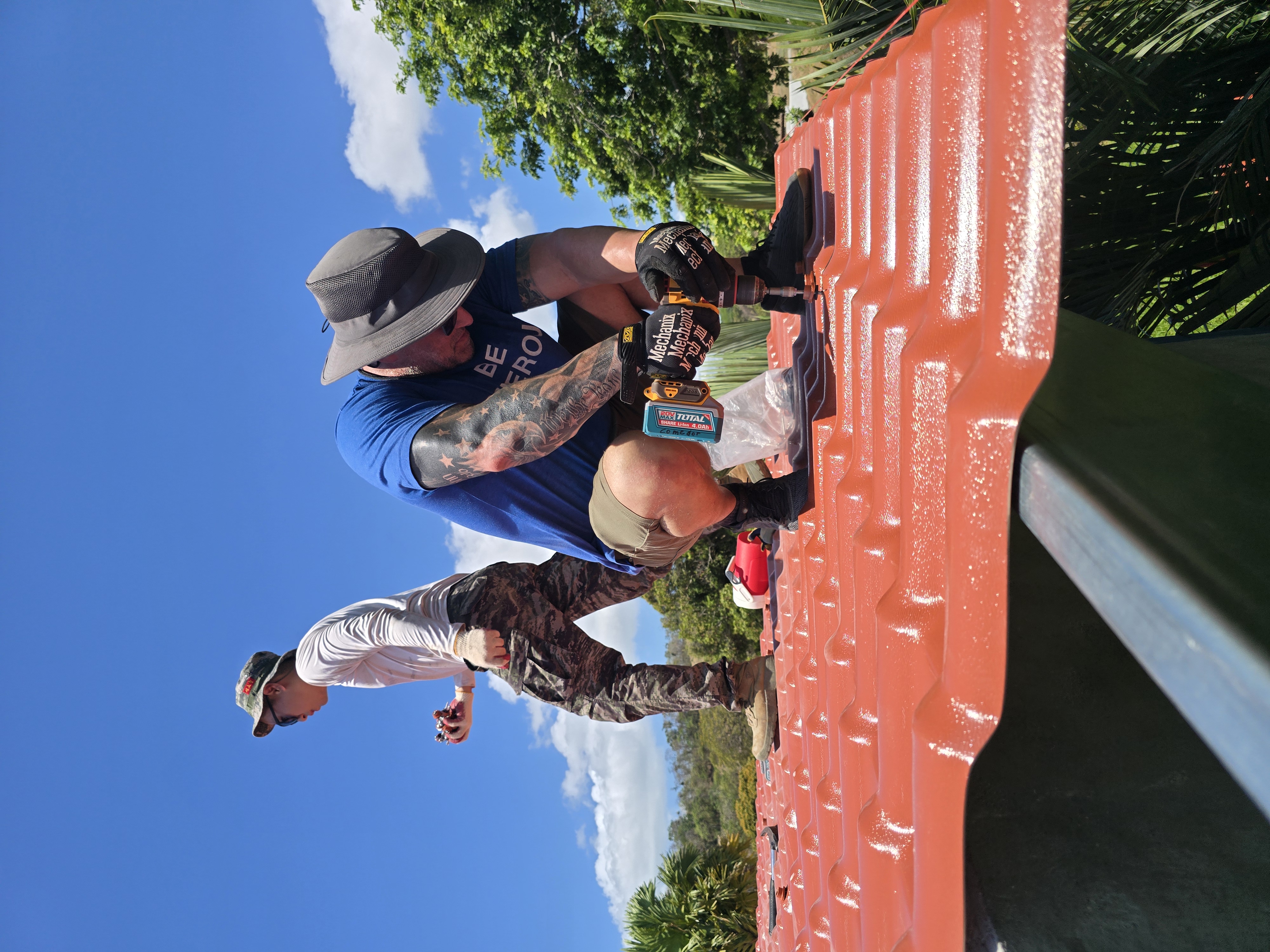 After a very productive morning we headed to lunch and Daniel shared his powerful testimony and we all prayed over him after. We all got right back at it and there are many moving parts to get done the projects that remain. Some are cutting the roof sheets, some are grinding and painting all the beams, some are cutting rebar and grinding the ends for welding braces, some are handing up the beams to guys on ladders while the other couple guys are welding. There is alot that is going on with many moving pieces but there is a good flow and we are all in a groove and moving along well.