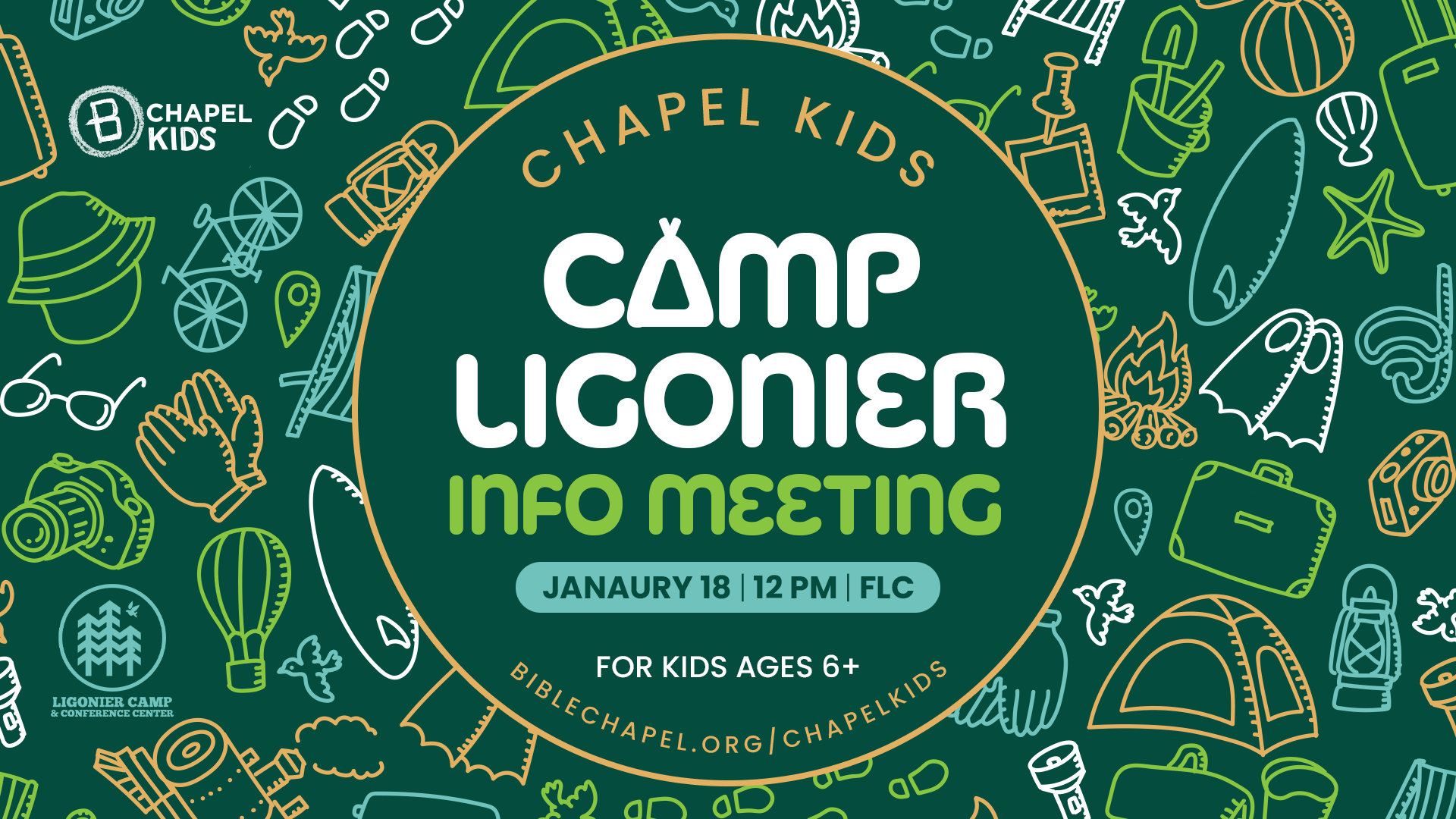 Chapel Kids and 56 Parents! The Bible Chapel is teaming up with Camp Ligonier this summer for a special Bible Chapel week beginning June 28, and we want YOU to be the first to hear about it! Join us for an informational meeting on January 18 at 12 PM in the FLC, where a Camp Ligonier representative will explain what to expect at camp, share details about their early bird discount, and answer any of your questions. We hope you’ll join us!