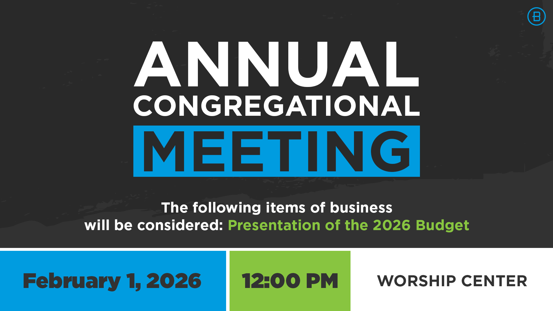 In order for our facility teams to remove all snow and safely prepare for the rest of the week, all TBC Buildings will be CLOSED on Monday, January 26. As of right now, we do anticipate our building to be open again on Tuesday, January 27.